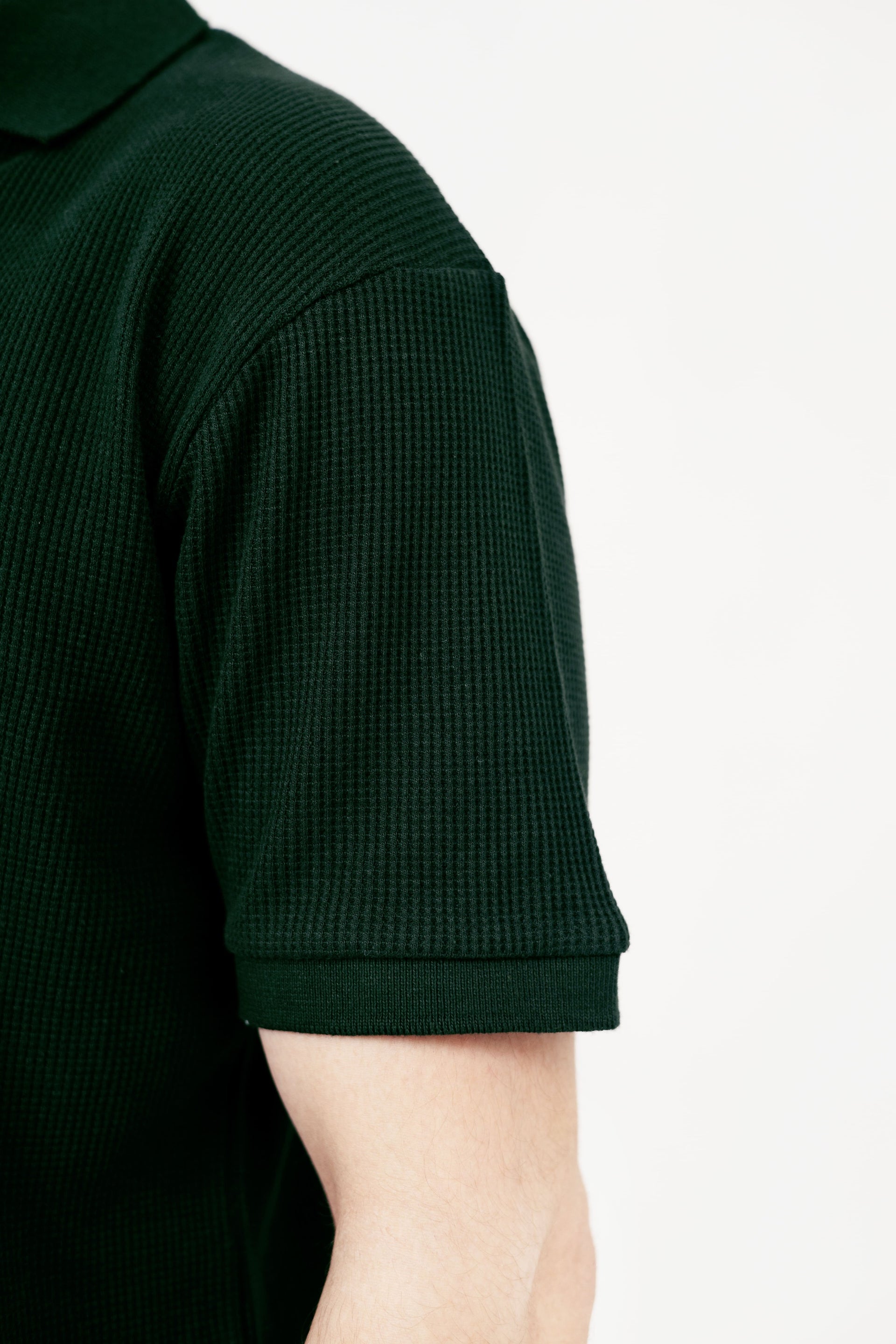 Step into refined style with this rich dark green polo, crafted from premium ribbed cotton for a distinctive textured look. The open V-neck collar adds a laid-back touch, while the sharp white embroidered logo offers clean contrast. A versatile staple for both smart casual and relaxed settings.